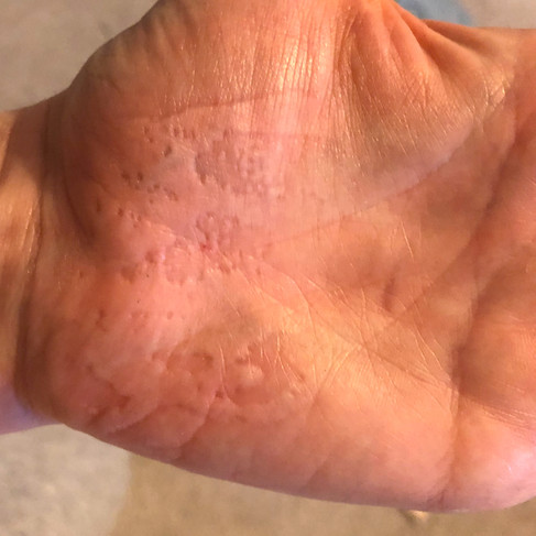 I created these edits on Photoshop so that I could view the skin prints more as...prints. The colour choice was instinctive but perhaps puts the photographs within the same conversation as some of my other works.