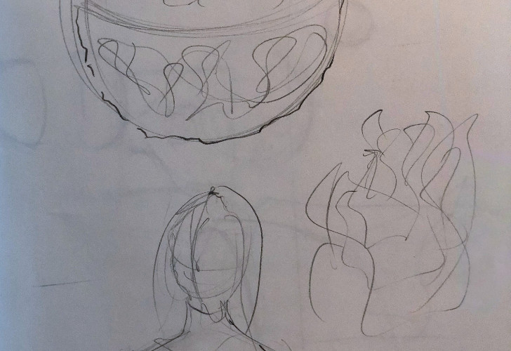 I imagined hand-hammering a sphere of zinc or copper in two halves, then deeply etching a design into its outer surface, similar to the aluminium block I had created years before. Once etched, I would bond the two halves together to create a hollow etched sphere which would become a printing/press object which could be inked and rolled or pressed onto a surface.