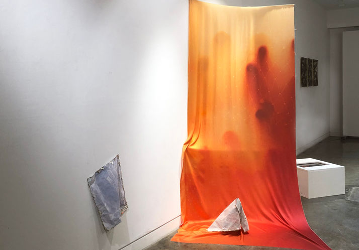 Digital silk print, plywood, cotton thread, Shi-Oji paper